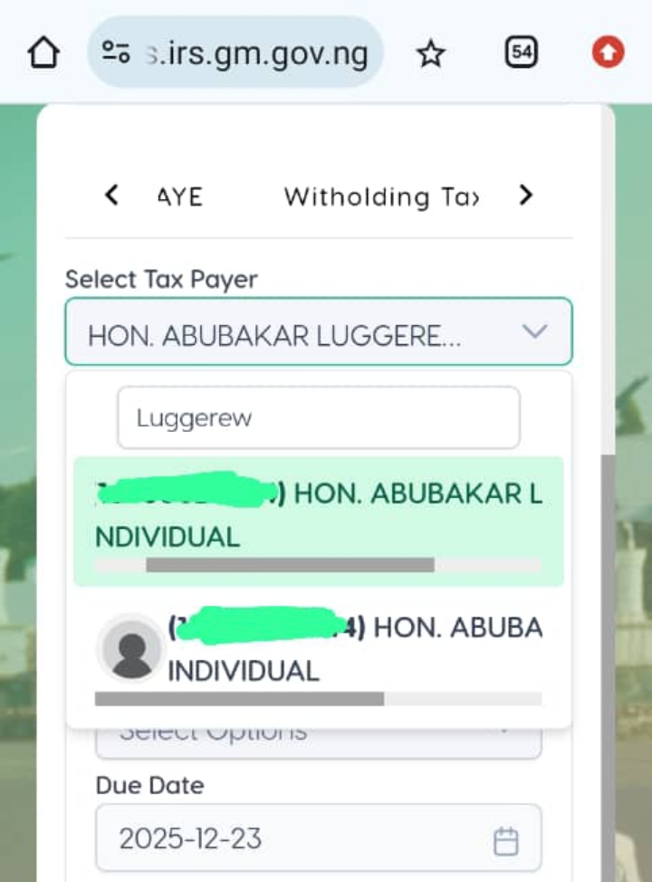 A search on the portal revealed names and TINs of Justice Halima Sadiya Mohammed, Gombe State Chief Judge, Hon. Abubakar Luggerewo, Speaker House of Assembly, including public and corporate organisations such Economic and Financial Crimes Commission (EFCC), Ministry of Finance, United Bank for Africa, Access Bank, and Ministry of Information.
